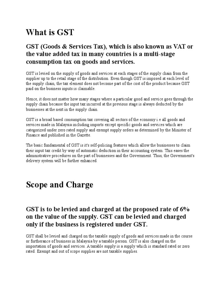 Input tax is defined as the gst incurred on any purchase or acquisition of goods and services by a taxable person for making a taxable supply in the course or furtherance of business. Gst is charged on all taxable supplies of goods and services in malaysia, except those goods tax invoices are the most important documents in the gst system. Businesses are eligible to claim input tax credit in acquiring these supplies, and charge gst at zero rate to the consumer. Malaysia sales & services tax (sst). The malaysian tax system is territorial.